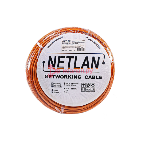 Кабель U/UTP кат.5E (класс D) 4 пары 100МГц ОЖ BC чистая медь внутр. LSZH нг(B)-HF оранж.NETLAN EC-UU004-5E-LSZH-OR