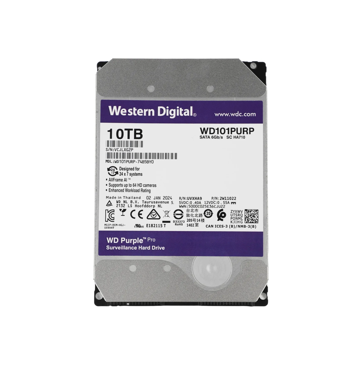 Жесткий диск WD Purple Pro [WD101PURP] относится к модельному ряду решений для использования в системах видеонаблюдения. Надежная конструкция обеспечивает выносливость к интенсивным нагрузкам в режиме непрерывной записи. Благодаря емкости 10 ТБ накопитель позволяет размещать большой объем информации. Оптимизация под RAID-массивы предоставляет возможность использования диска в связке с другими накопителями. Интерфейс подключения SATA III гарантирует широкую совместимость WD Purple Pro с компьютерами и другим оборудованием.